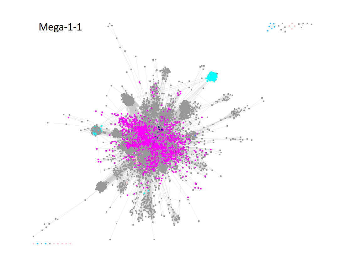 The UniRef50 SSN for the resulting Megacluster-1-1 using an aligment score of 11 is displayed below.