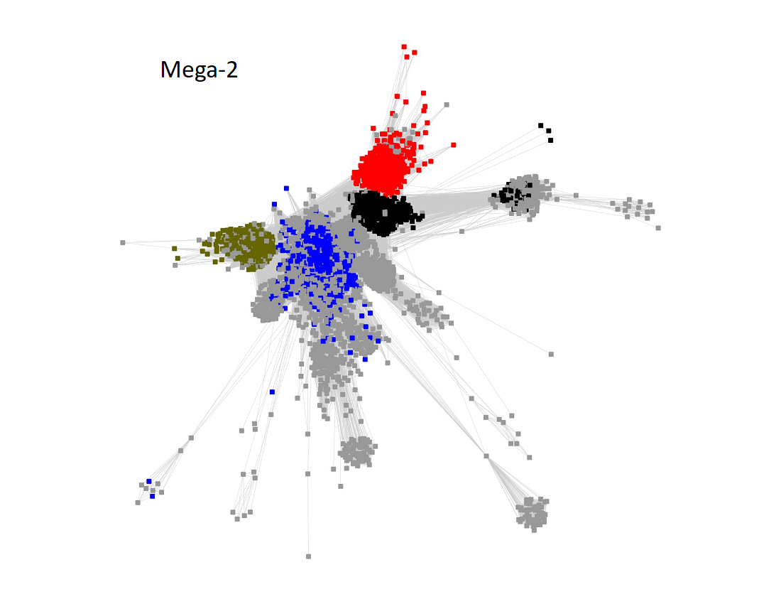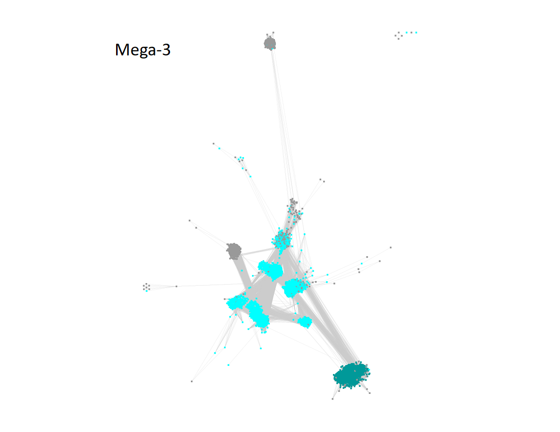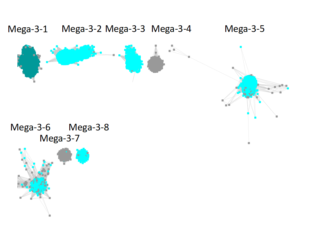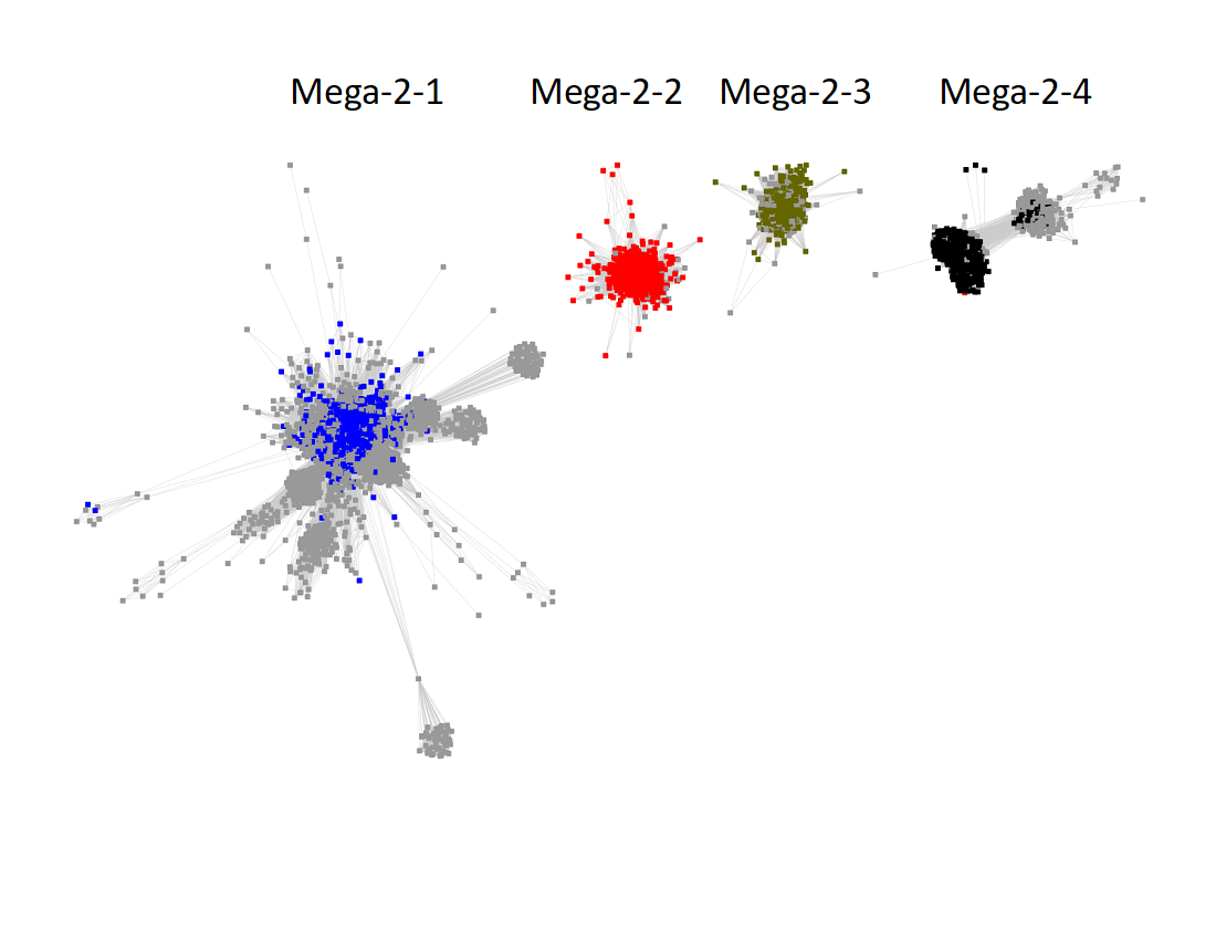As described in the tabs, Megaclusters-1, -2, -3, -4, and -5 were segregated into component subgroups.